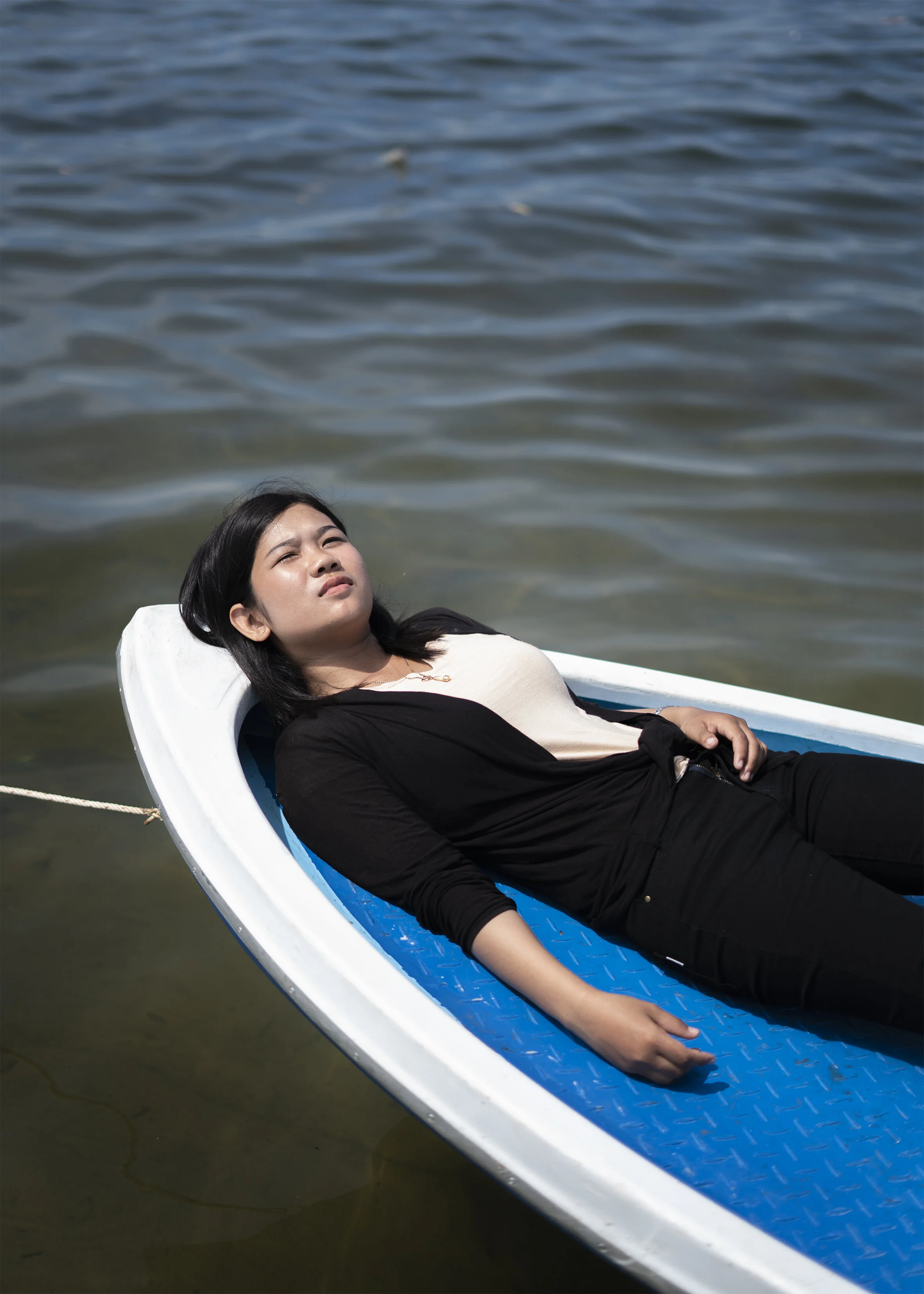 On the tip of the peninsula where the Tonlé Sap and Mekong rivers meet, lies the five star Sokha Hotel with its 1650 square meter swimming pool and 18 stories of restaurants, bars and luxurious suites. A small private ferry transports the hotel’s guests across the river and straight to the centre of Phnom Penh, conveniently circumventing the hustle and bustle of the city traffic. Between the hotel and the river waters is a small concrete slope and a small, muddy patch of land. This is where twenty year old Ya Rohny lives with her husband and newborn daughter.